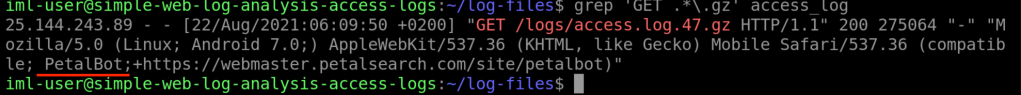 4- Looking at the user agent string for the .gz request, you can see it came from a crawler bot. What’s the name of the bot?