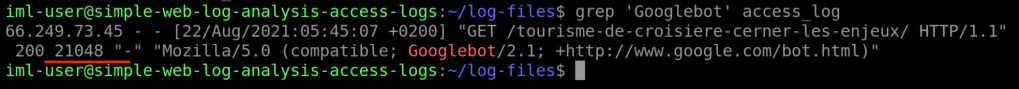 7 – One instance of Googlebot shows up in the access logs. What is the size of the response sent to the client?